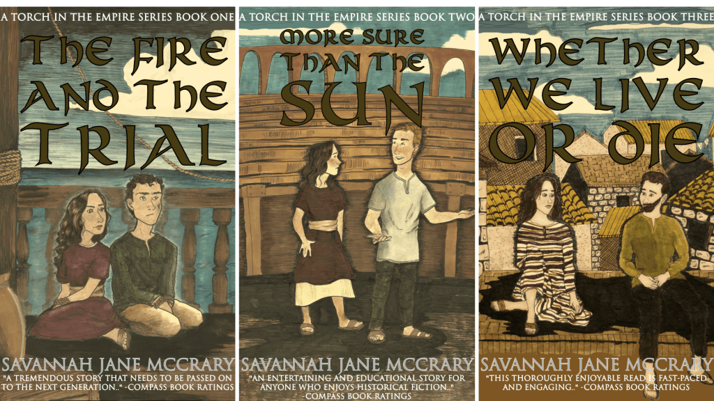 Weaving together fictional characters with real historical persons and events, this powerful, hope-filled three book series takes you back to first century Rome when the early church faced the worst of persecutions under Emperor Nero. Also includes interior illustrations by Grace Obenhaus and the McCrary family.